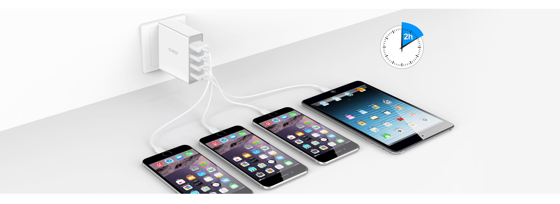 Integrated with intelligent detection IC that enables each port to detect your device and deliver ideal current up to 2.4A, 6A overall.
