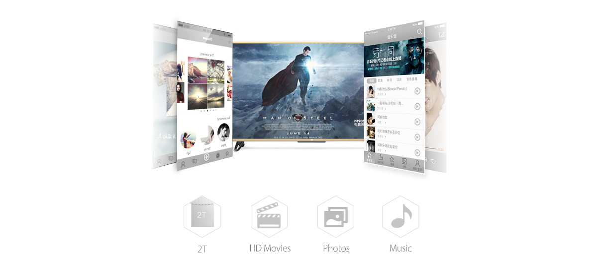 Support to store mass movies, songs and pictures up to 2TB.