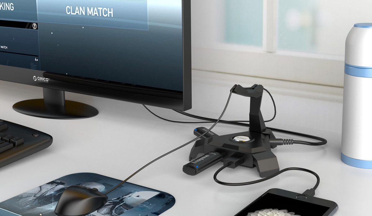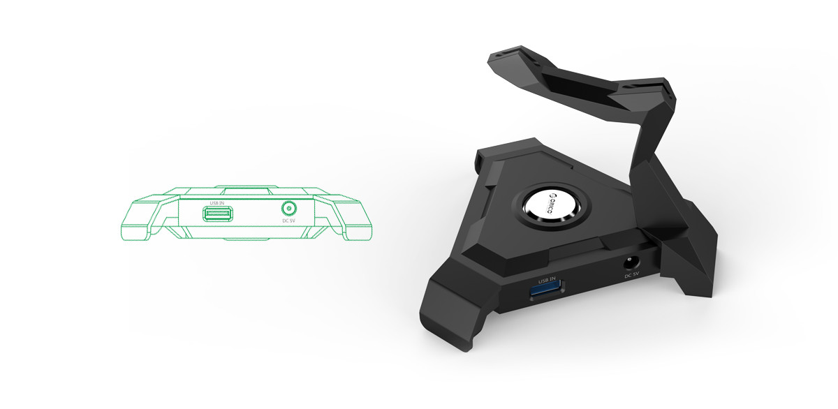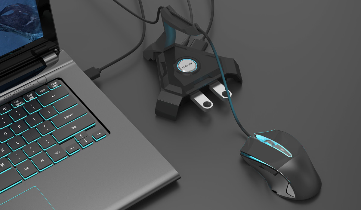 Black color and scorpion design make it cool and fashionable; ORICO logo in the middle is the LED indicator, which emits blue light, an amazing company for game players or work enthusiasts.