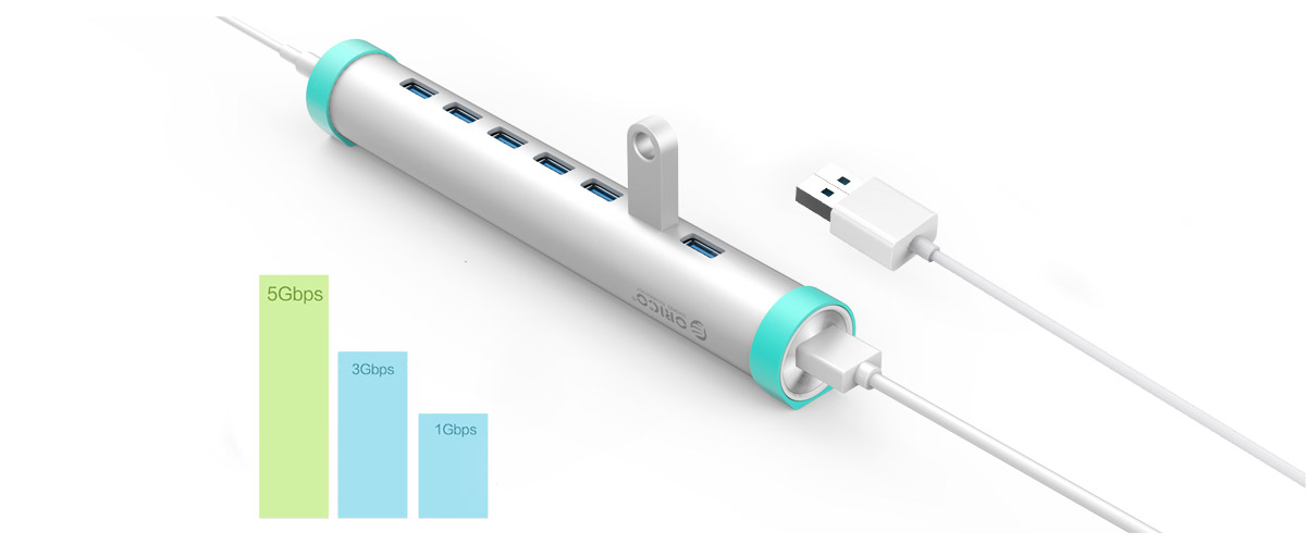 7-port USB3.0 hub meets your needs of ports while you enjoy the convenience of Ultrabook and tablet; easy to carry plus enough interfaces, both you get; moreover protects valuable original PC port to be your almighty assistant of desktop.