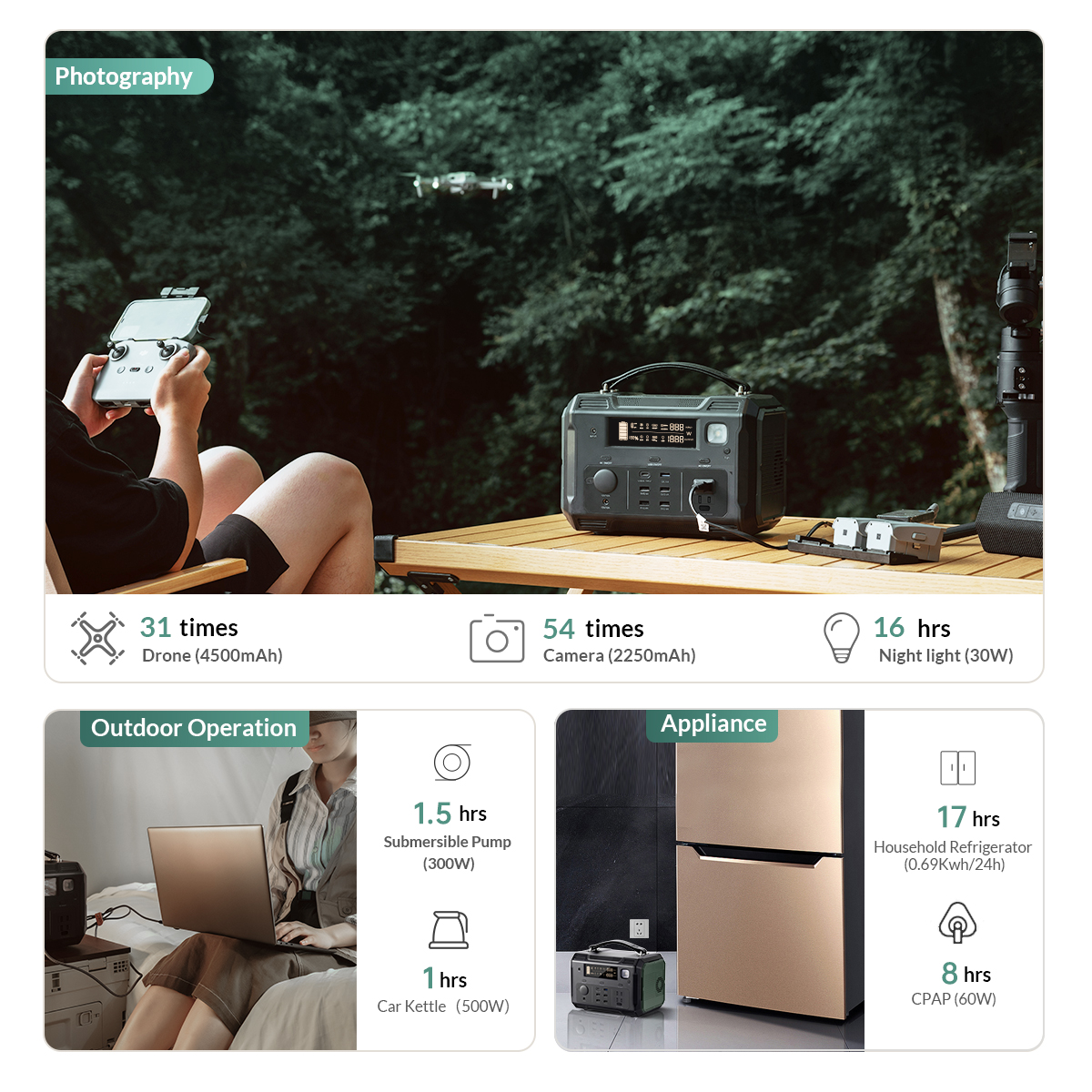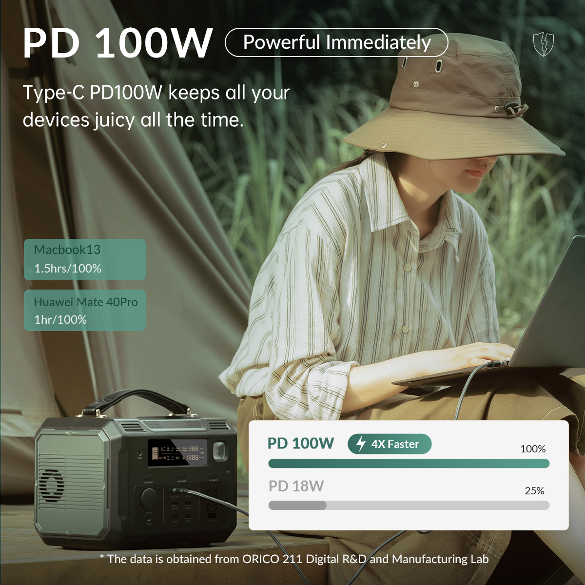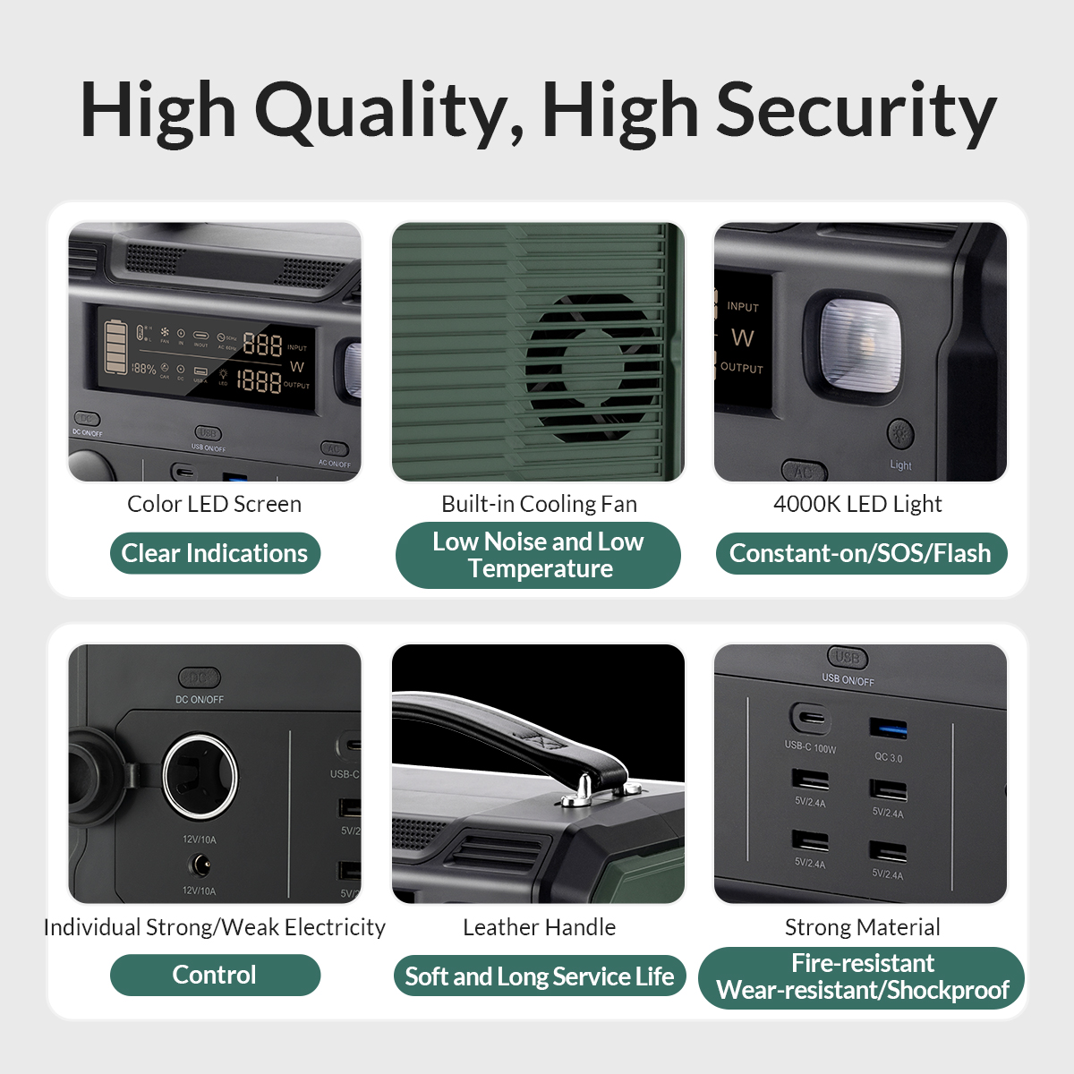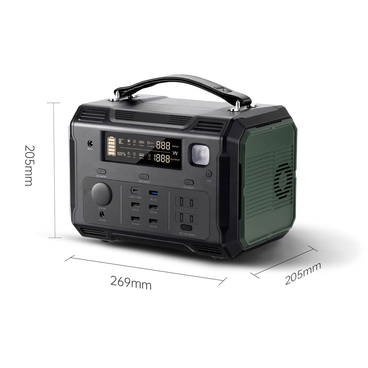 Battery Percentage,Input/Output Power, Status of Fan, LED Light, Delivery Port