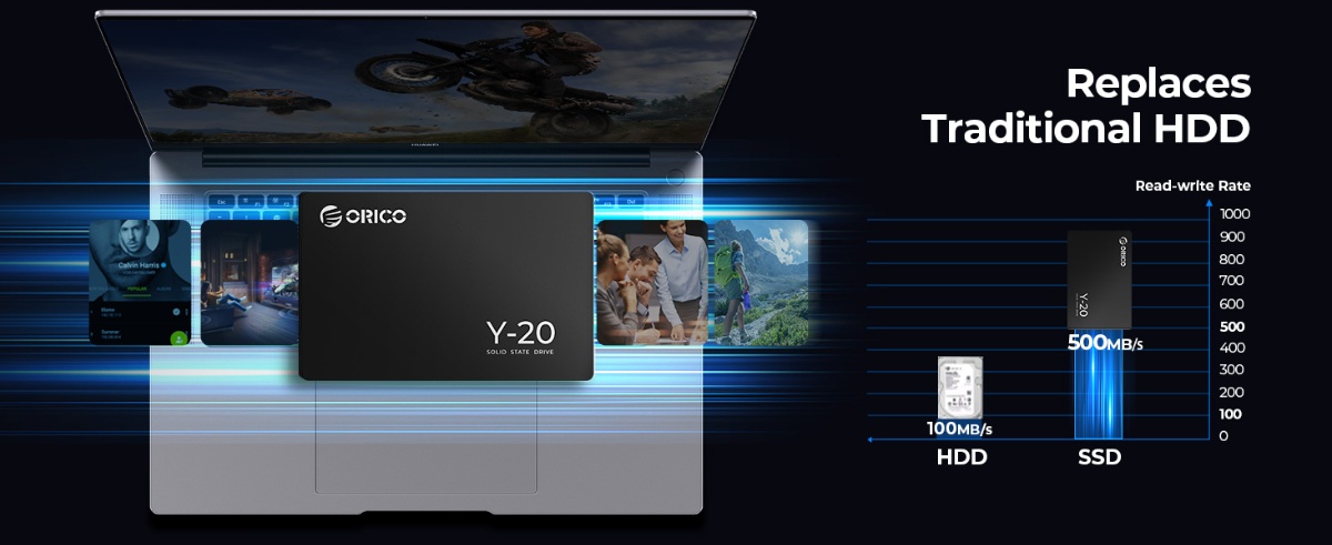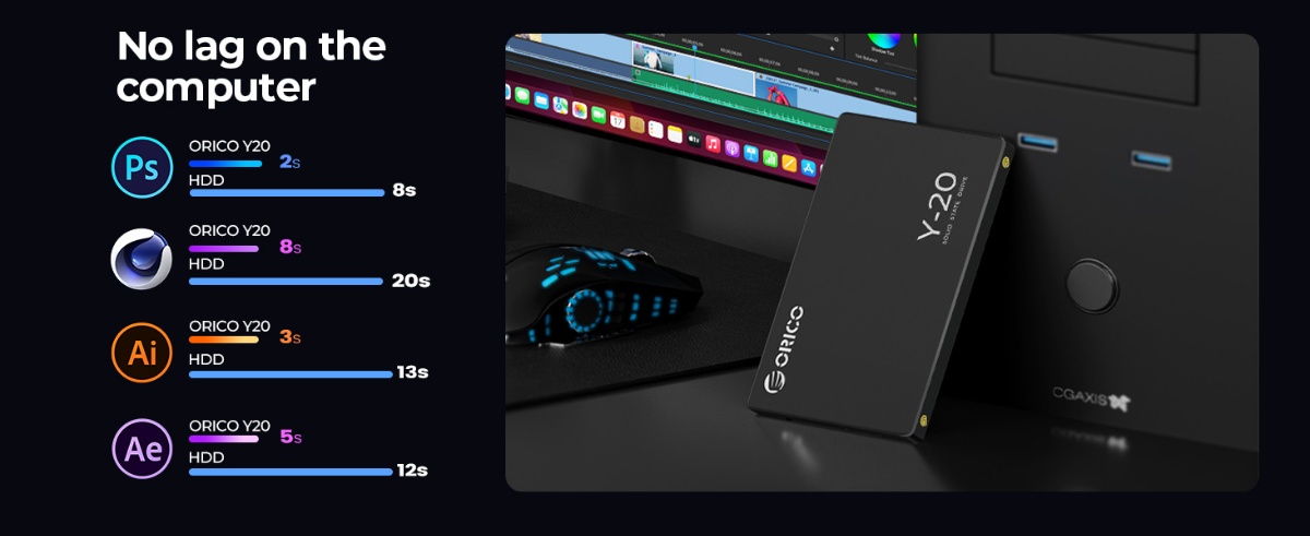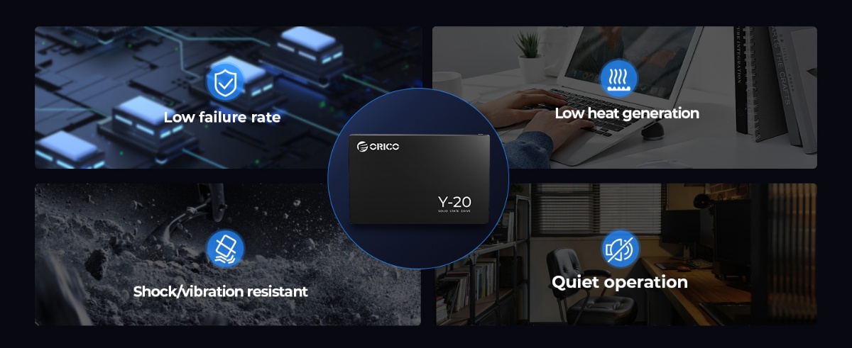 Applying the advanced 3D NAND flash, Y20 features higher reliability and better power efficiency than traditional SSDs equipped with 2D NAND flash. The Y20 offers improved endurance and longer battery life that you're able to work longer without frequently recharge your laptop.