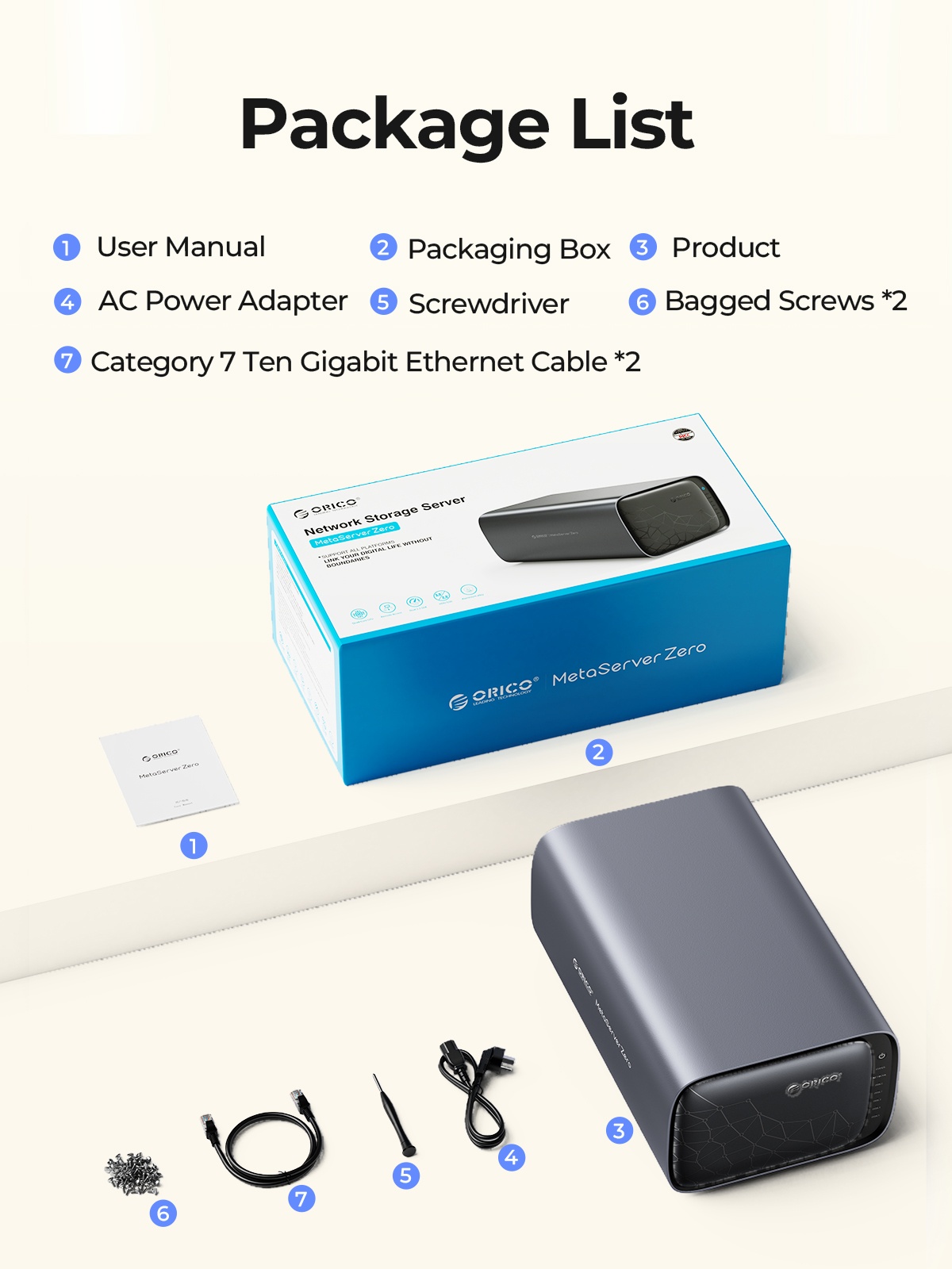 MetaBox Mini*1, Power Adapter*1, Network Cable*1, USB-A to USB-C Data Cable*1, User Manual*1, Srewdriver*1, Screw Pack*1