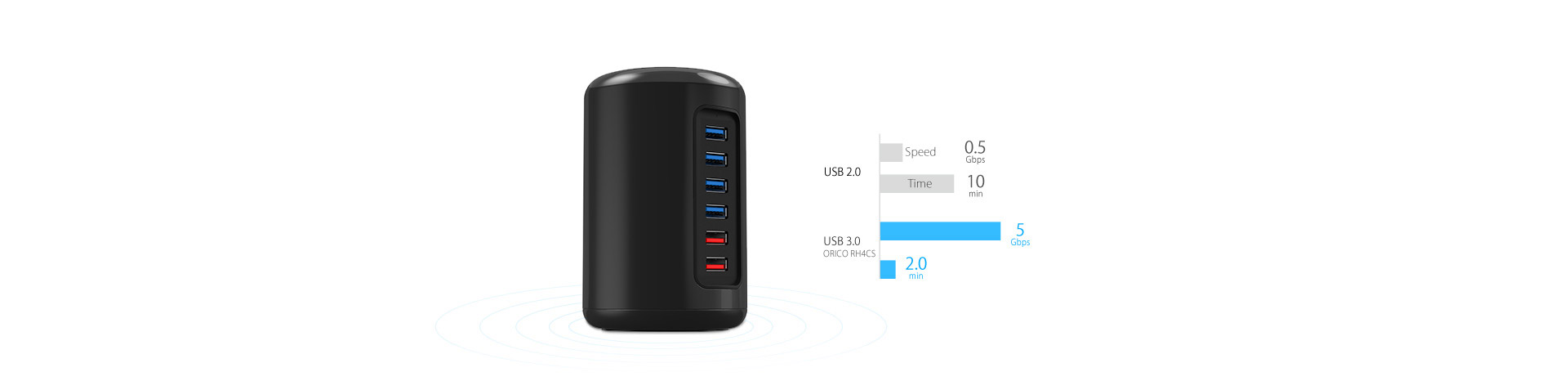 Provide 1.0 - 2.4A current to charge cellphones, tablets or other devices at full speed while expanding USB3.0 ports.